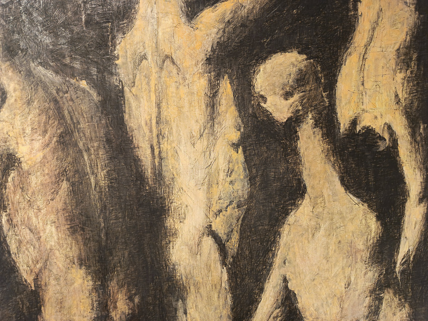 Erik Mavrič, Nižanje stroškov za večjo učinkovitost, 2026, oglje na mediapan in stirodur, detajl